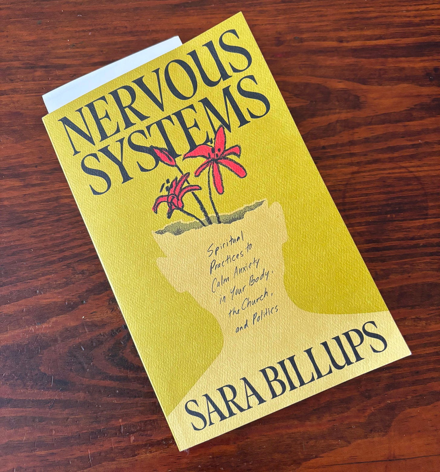 I’ve just finished reading Sara Billups brilliant new book Nervous Systems: Spiritual Practices to Calm Anxiety in Your Body, the Church, and Politics. This book almost unnerved me because it felt like Sara had been camping out in my brain for a month or two, and then wrote a book about what she’d seen. Her words helped name and shed light on all the things I spend my time worrying about, and offer yes, solidarity, but also a path forward. If you struggle with anxiety related to your health (or the health of someone you love), if you are a caregiver, if you find yourself nervous in church or spiritual spaces, or if politics has you pulling your hair out, I highly recommend this book. Here’s a snippet: